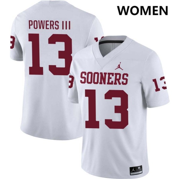#13 Reggie Powers III OU White Women's Jerseys Game College Football