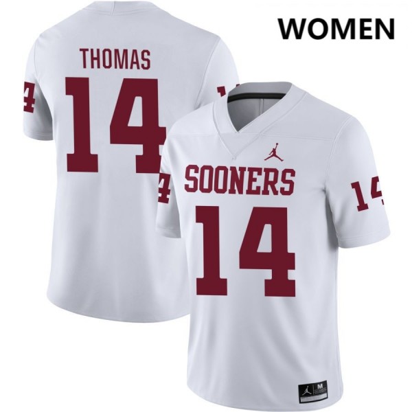 • #14 Elijah Thomas Oklahoma White Women Jerseys Alumni College Football