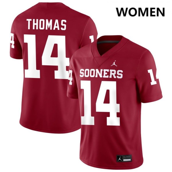 #14 Elijah Thomas Sooners Crimson Womens Jersey Player College Football