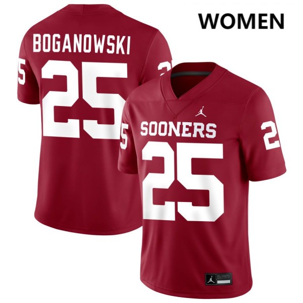 #25 Michael Boganowski Sooners Crimson Womens Jersey Game College Football