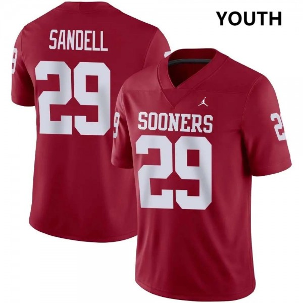 • #29 Tate Sandell Oklahoma Sooners Crimson Youth Jerseys University College Football