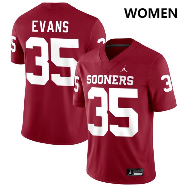 #35 Liam Evans Boomer Sooner Crimson Womens Jersey Player College Football