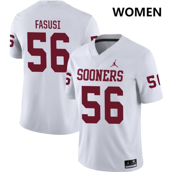• #56 Michael Fasusi Oklahoma Sooners White Women's Jerseys Game College Football