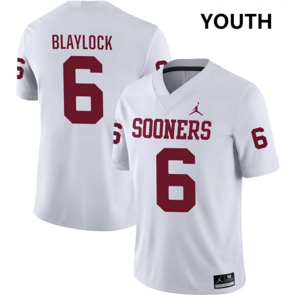 #6 Tory Blaylock Sooners White Youth Jersey NCAA College Football