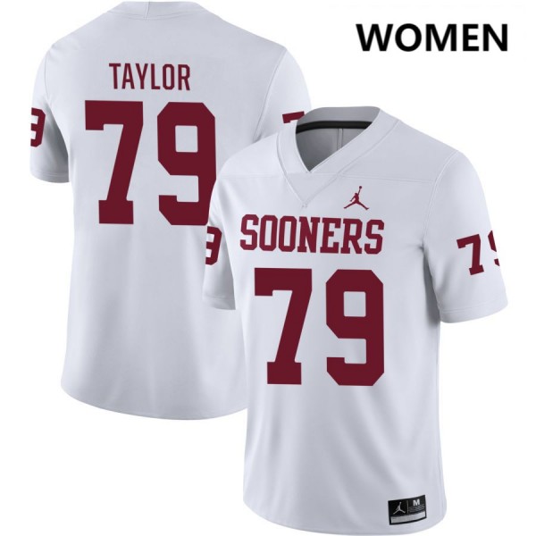 #79 Jake Taylor OU White Womens Jersey 2025 College Football