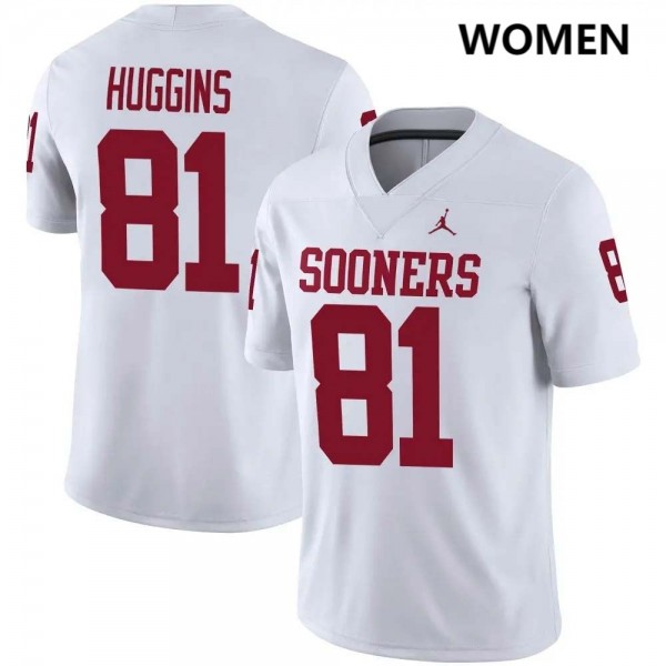 • #81 Will Huggins Oklahoma Sooners White Womens Jerseys Official College Football